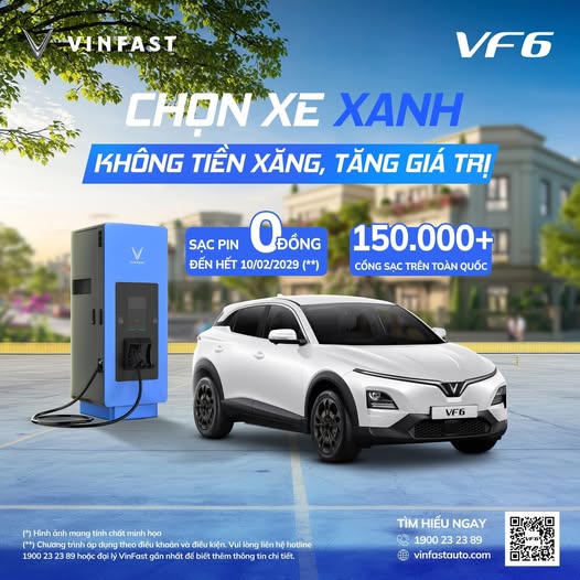 ✔ Miễn phí sạc pin cho xe điện VinFast đến 31/12/2028.