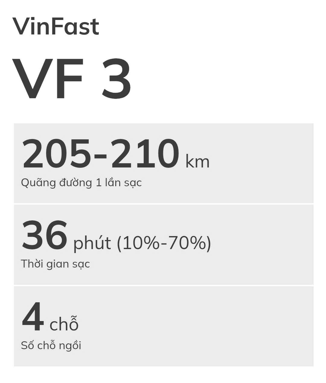Những thông số này cho thấy VinFast VF3 phù hợp cho việc di chuyển trong đô thị với khả năng linh hoạt trên nhiều dạng địa hình.
